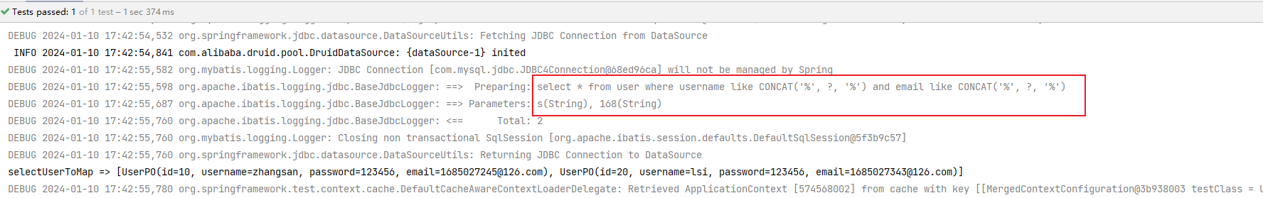 System.out.println("selectUserToMap => "+userMapper.selectUserMultiparameter2("s","168"));