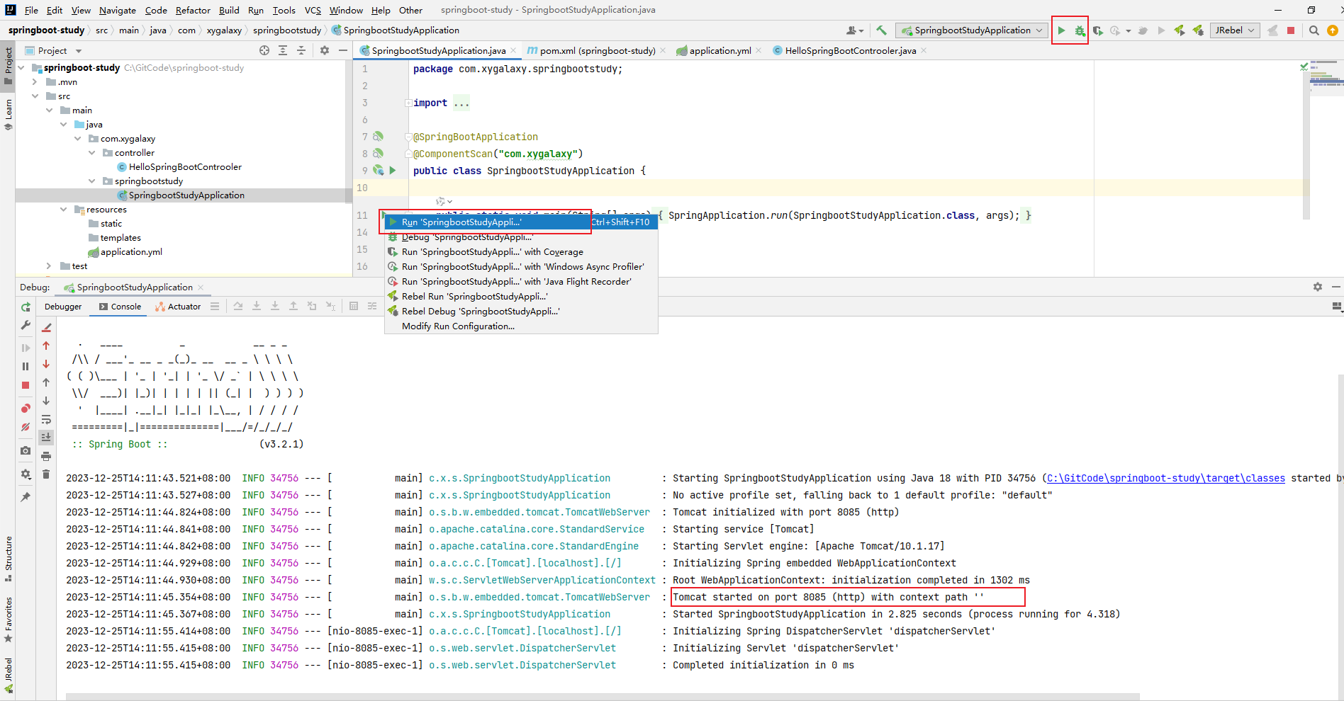 SpringApplication.run(SpringbootStudyApplication.class, args);