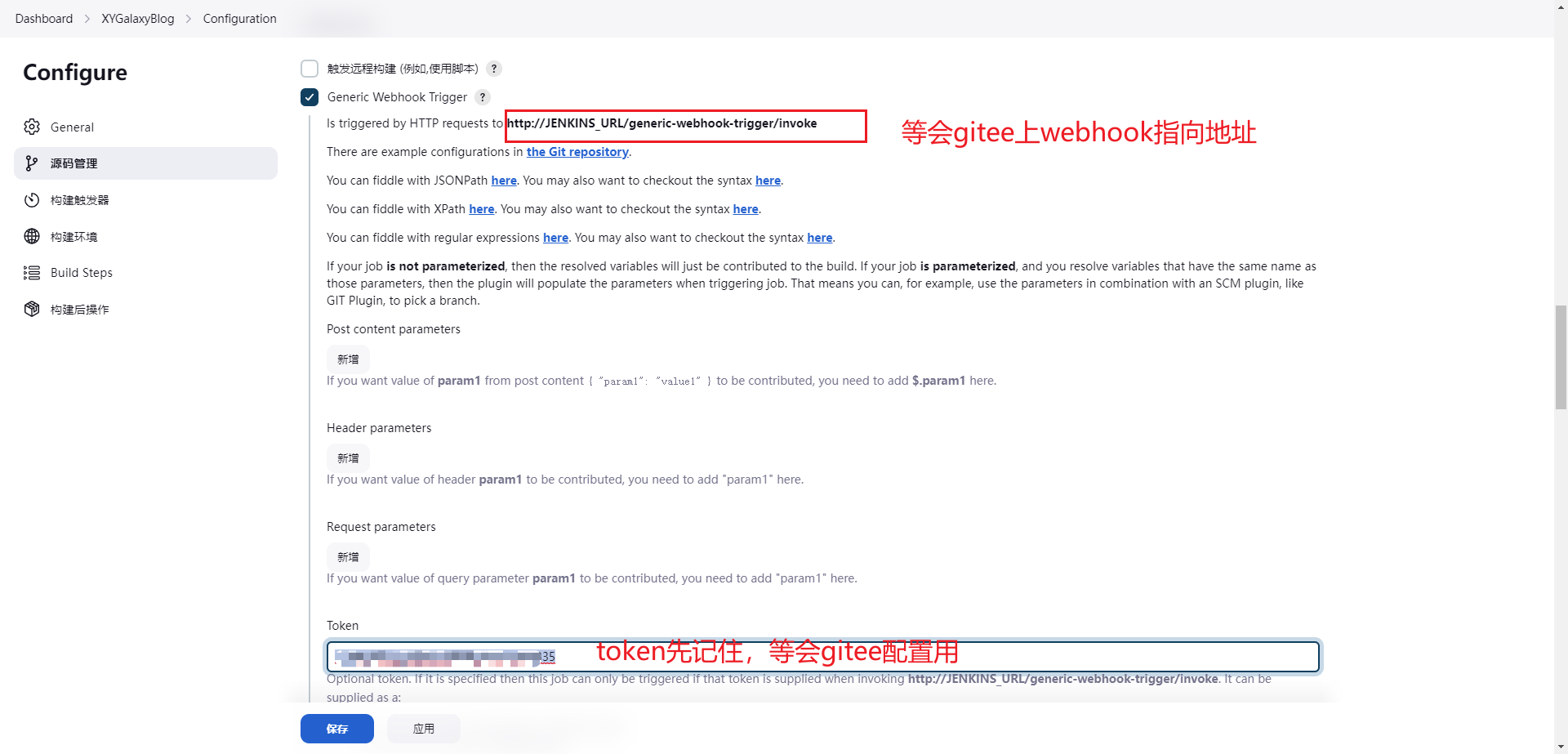 • 配置Generic Webhook Trigger