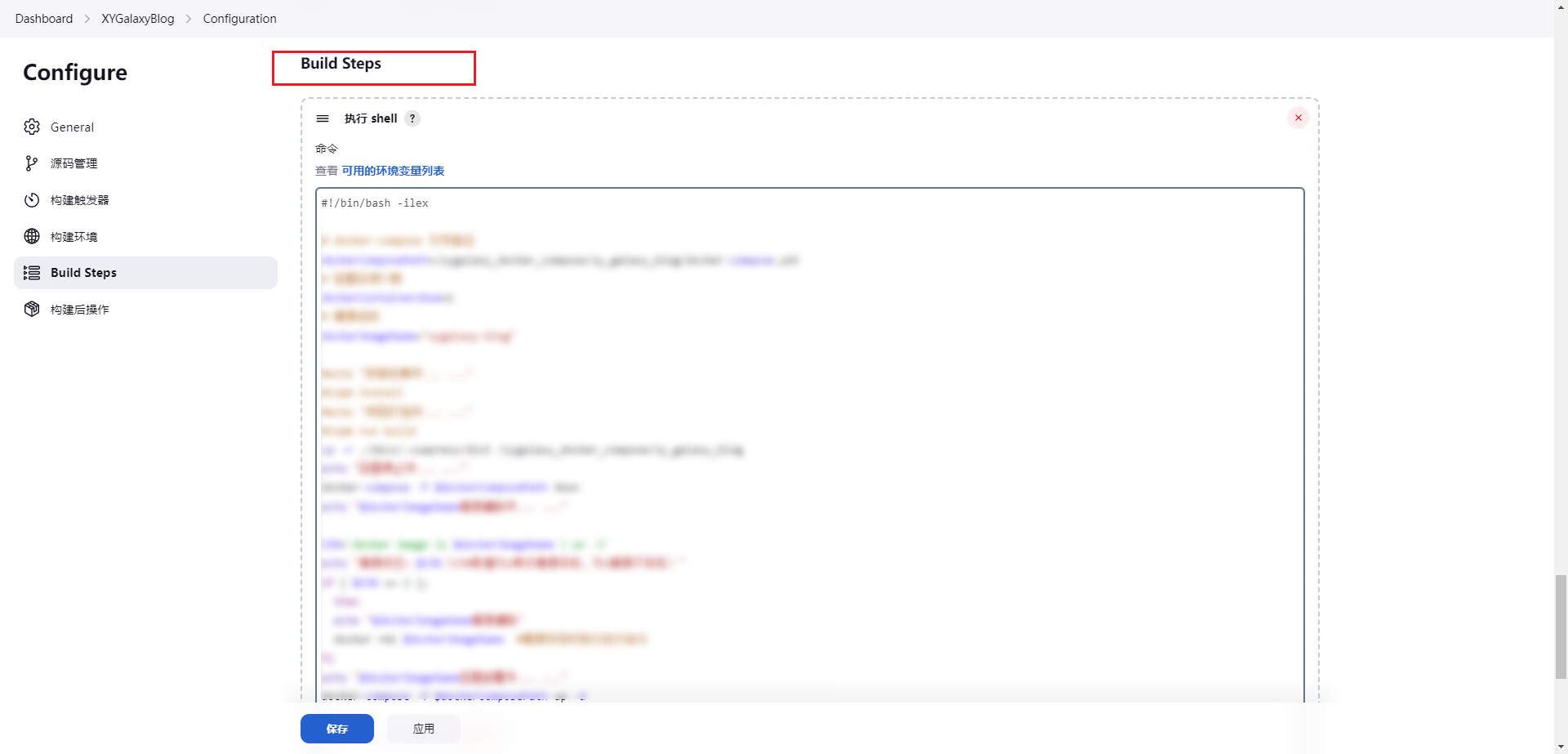 • 添加执行Shell脚本,就是执行docker-compose命令构建镜像并运行